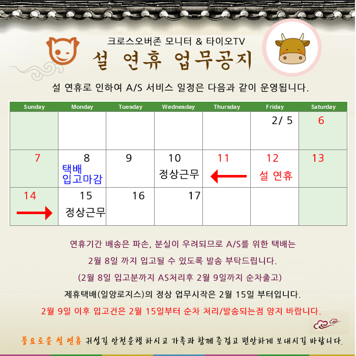 *방문 AS의 경우 정상 근무일인 2월 10일까지 가능합니다.