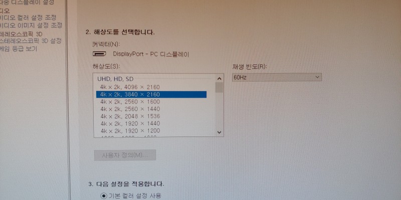 4096x2160까지 지원하지만 최적해상도는 3840x2160입니다.