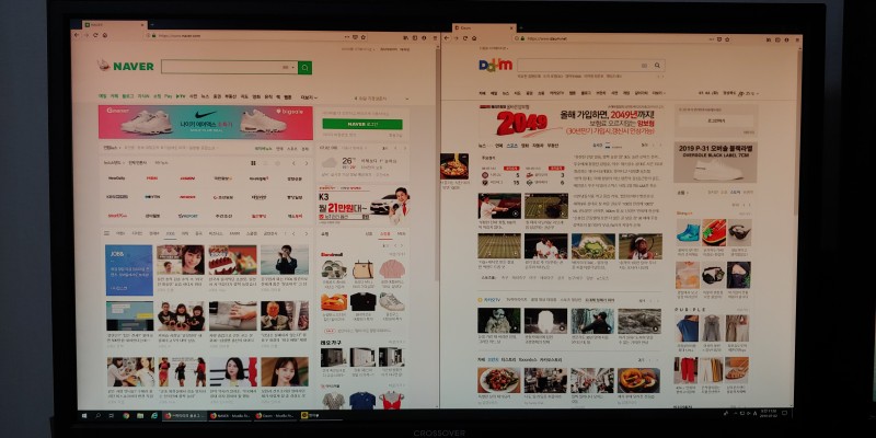 기존에 사용하던 27인치 모니터와 함께 설치된 크로스오버 2815UHD 4K HDR 입니다.